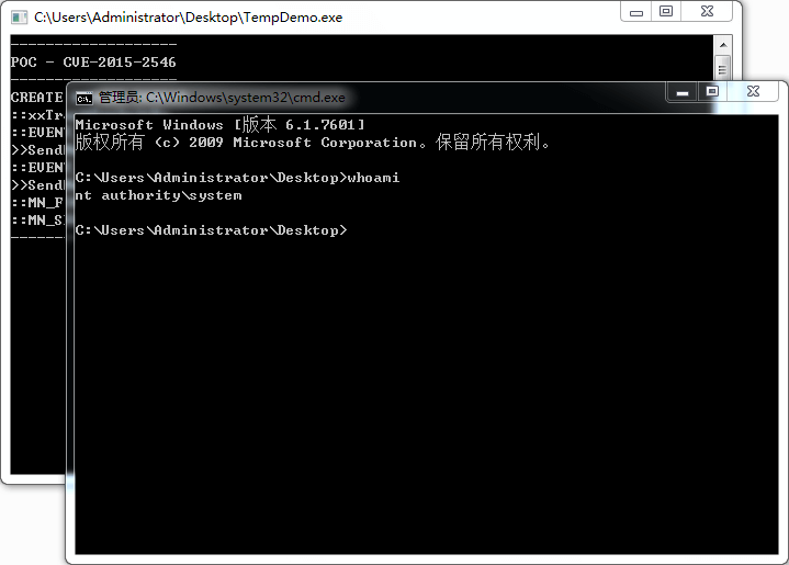 Both this vulnerability and CVE-2017-0263 are use-after-free (UAF) of tagPOPUPMENU object, while the difference is just the time to exploit: the triggering condition of CVE-2017-0263 would be satisfied just after the kernel function freeing target popup menu object, but CVE-2015-2546 in this analysis needs the user process to initiatively trigger the logic to free the target popup menu object. Generally speaking, the exploitation of this vulnerability is much easier than the case of CVE-2017-0263, and the exploitation code of CVE-2017-0263 can be used for this vulnerability almost without modification. There is no kernel object that needs to be fixed here as well.