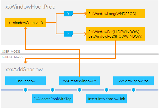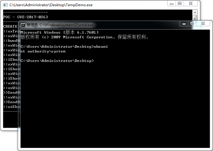 bDoneExploit = Triggered == 0x9F9F;在函数 xxShadowWindowProc 中增加发送提权消息的利用代码