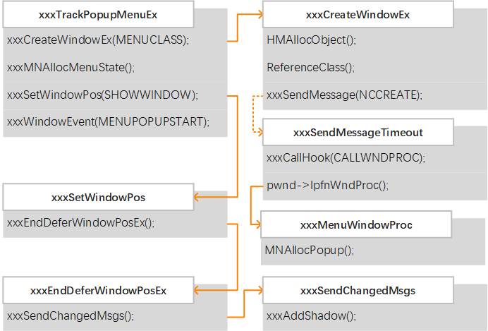 当用户在操作系统中以点击鼠标右键或其他的方式弹出上下文菜单时,系统最终在内核中执行到 xxxTrackPopupMenuEx 函数。该函数调用 xxxMNAllocMenuState 函数来分配或初始化菜单状态结构体。